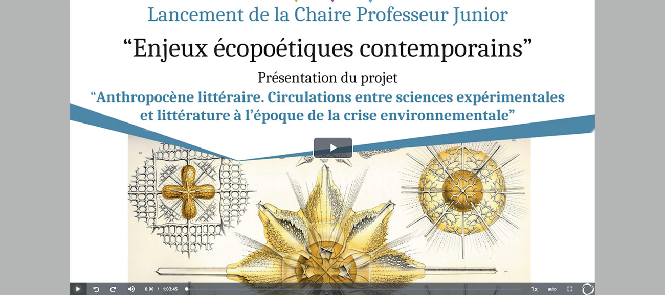 La chaire « Enjeux écopoétiques contemporains » a été officiellement inaugurée le 24 janvier 2025 à l’amphithéâtre de la présidence. Portée par Riccardo Barontini au sein du laboratoire de recherche Arts/Langages : Transitions et Relations (ALTER), elle a pour ambition d’explorer les relations entre littérature contemporaine et sciences expérimentales face aux défis environnementaux.