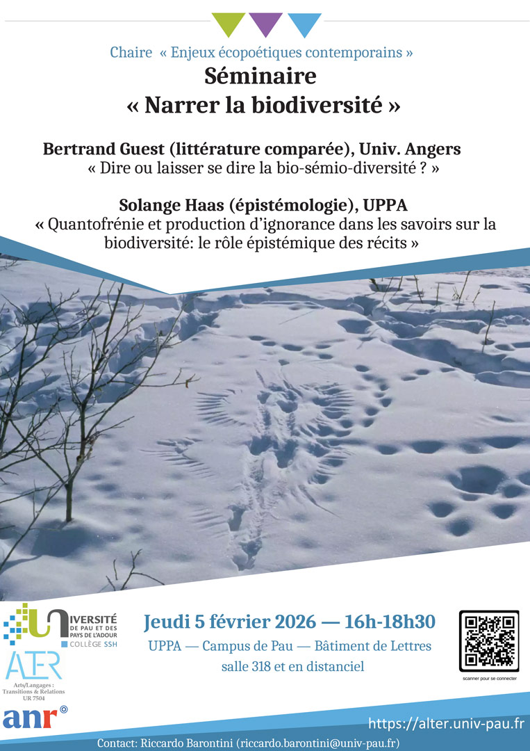 Séminaire “Narrer la biodiversité” séance 1Campus de Pau, bât. Lettres, salle 318 et en visio