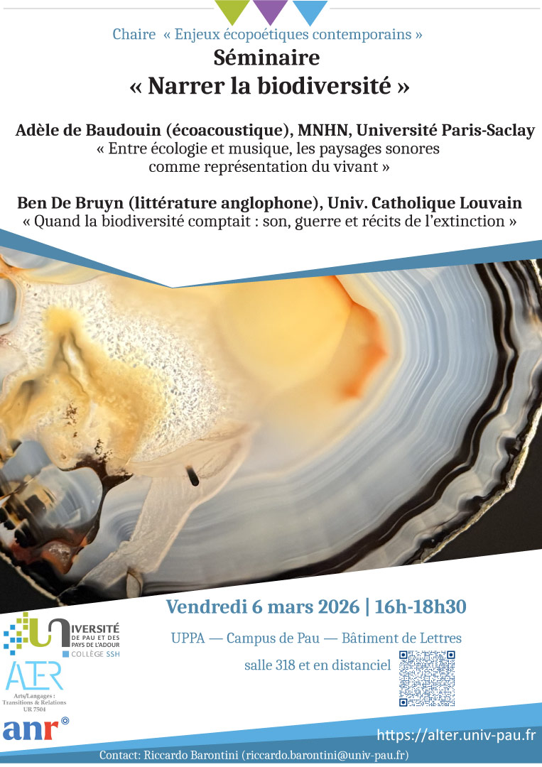 Séminaire “Narrer la biodiversité” séance 2Campus de Pau, bât. Lettres, salle 318 et en visio
